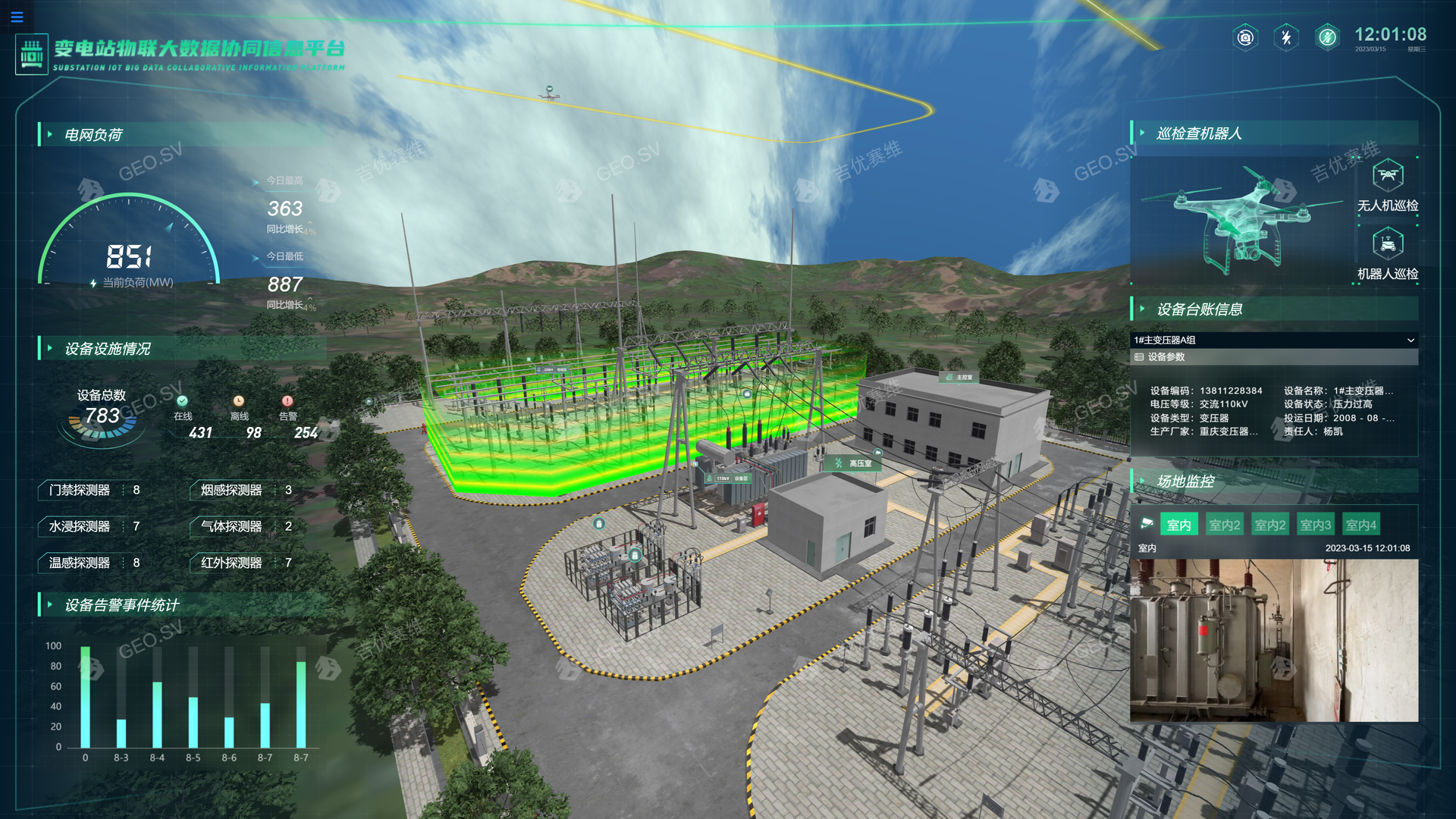 通过三维模型直观展示变电站状态,便于监控和管理。